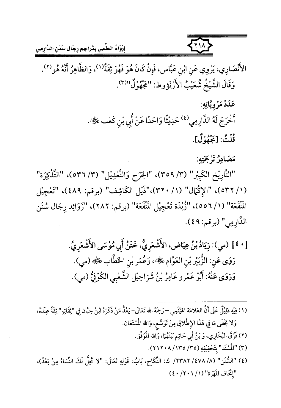 كتاب إرواء الظمي بتراجم رجال سنن الدارمي