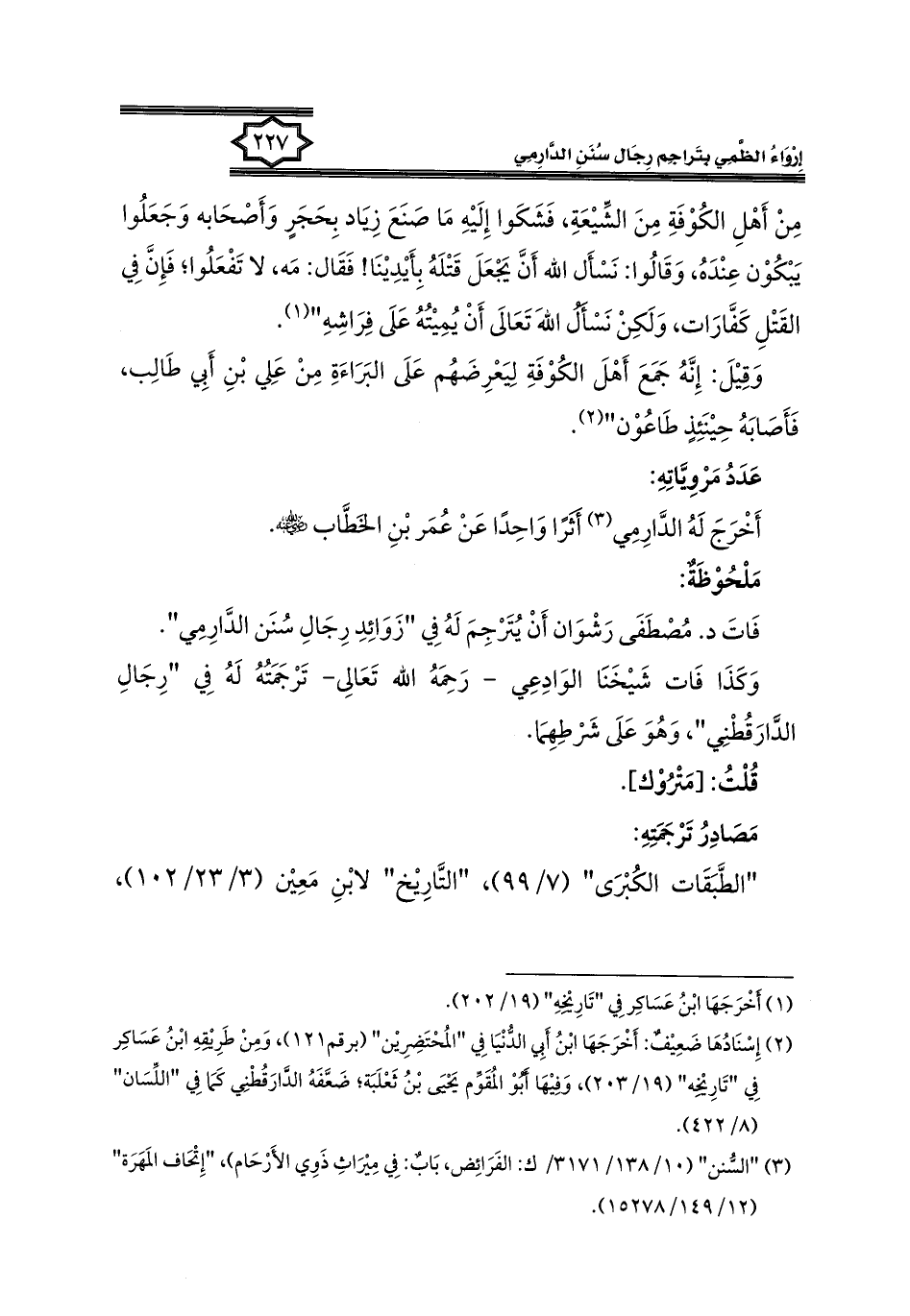كتاب إرواء الظمي بتراجم رجال سنن الدارمي