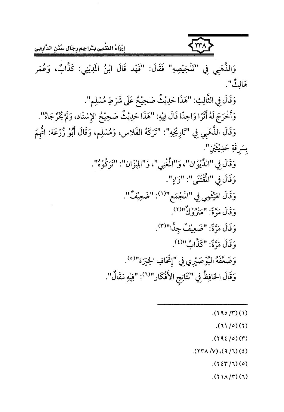 كتاب إرواء الظمي بتراجم رجال سنن الدارمي