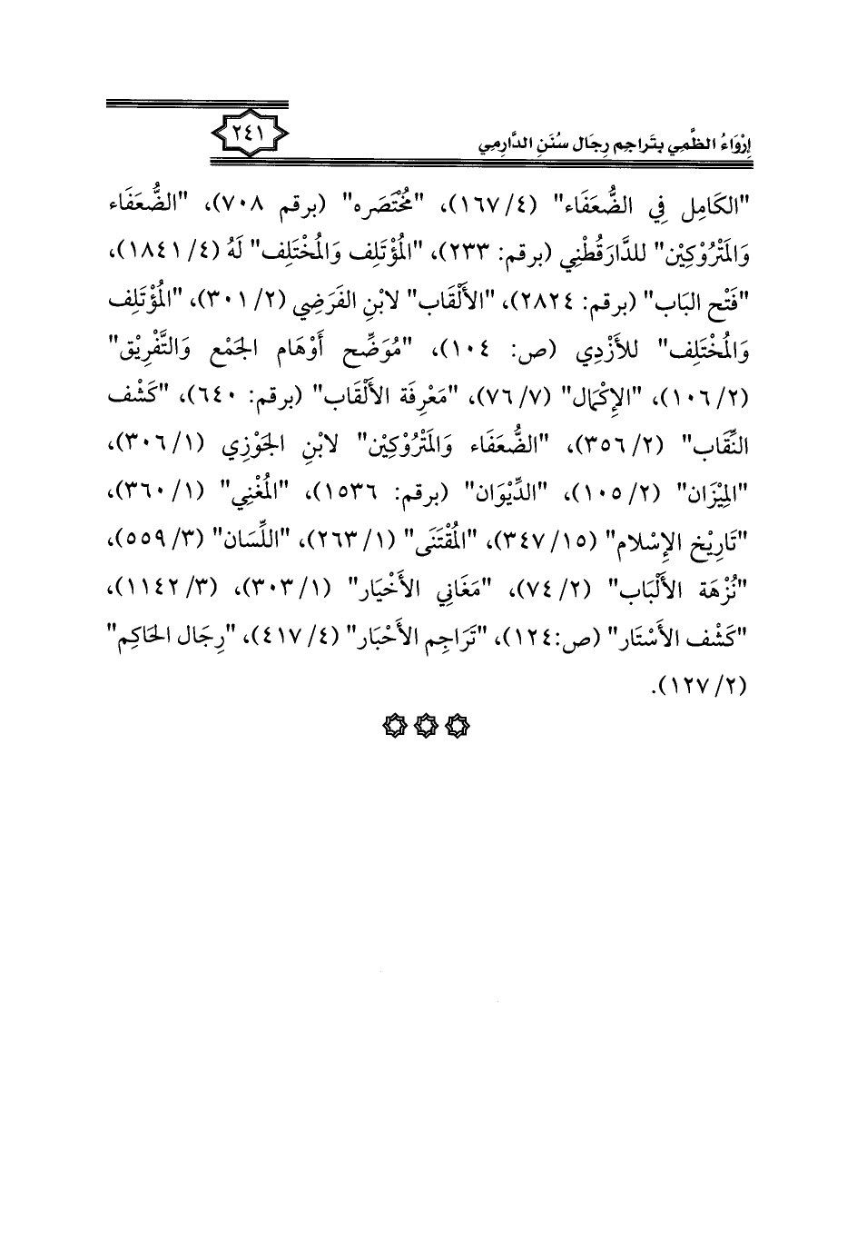 كتاب إرواء الظمي بتراجم رجال سنن الدارمي