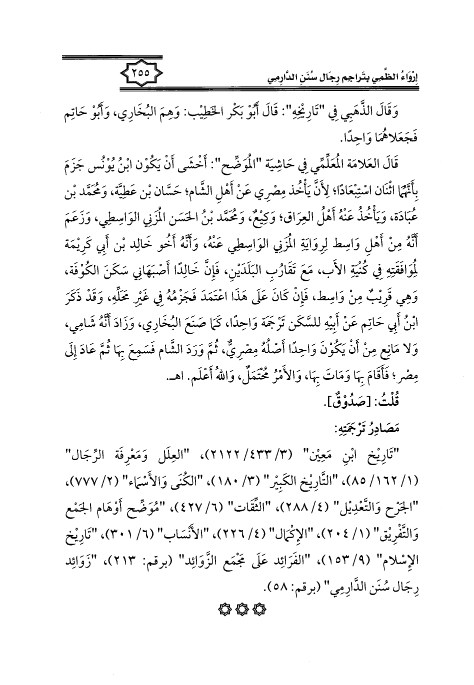 كتاب إرواء الظمي بتراجم رجال سنن الدارمي