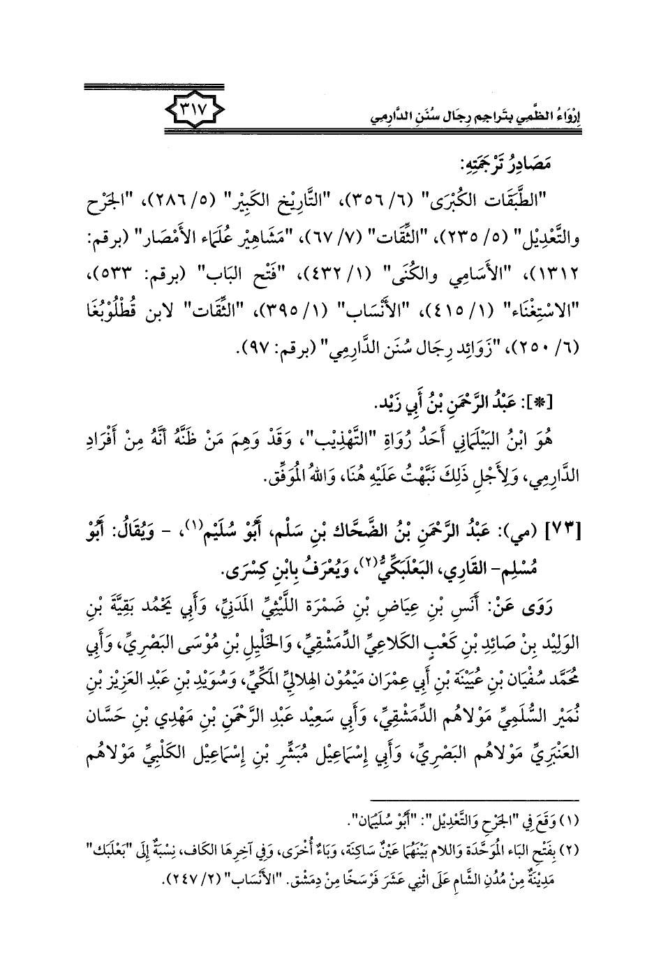 كتاب إرواء الظمي بتراجم رجال سنن الدارمي