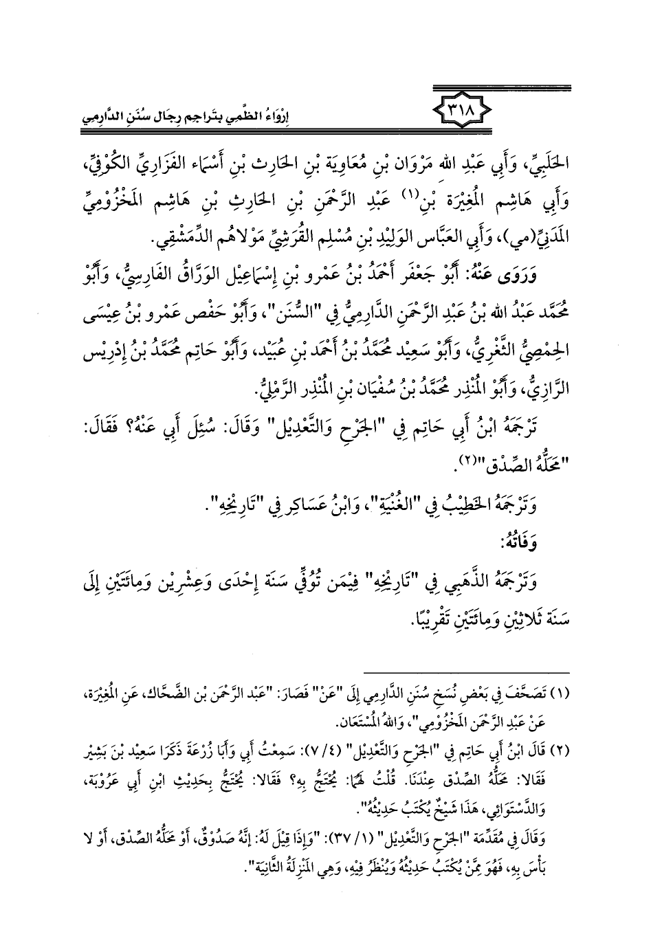 كتاب إرواء الظمي بتراجم رجال سنن الدارمي