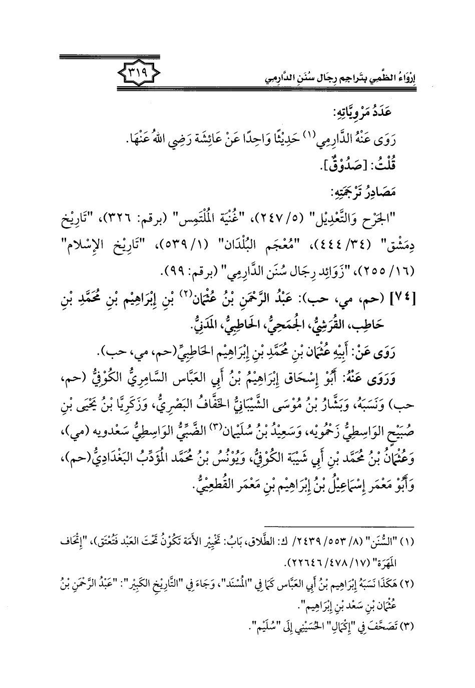 كتاب إرواء الظمي بتراجم رجال سنن الدارمي