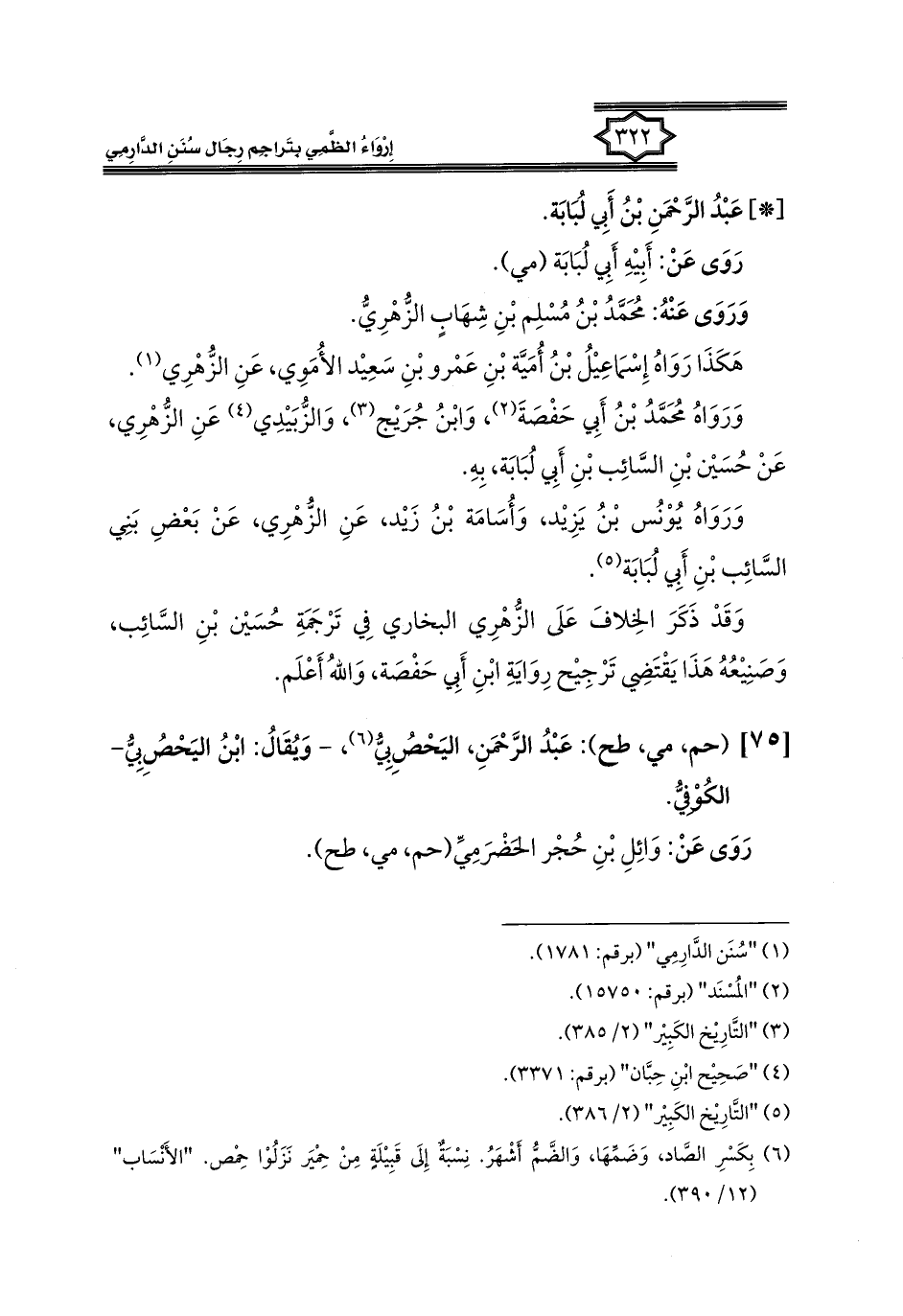 كتاب إرواء الظمي بتراجم رجال سنن الدارمي
