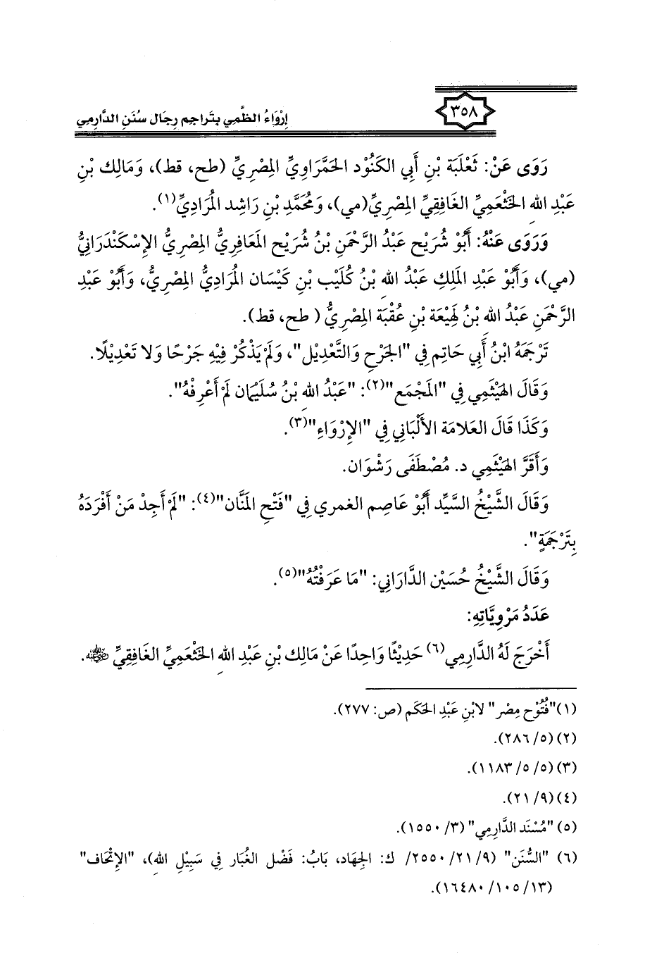 كتاب إرواء الظمي بتراجم رجال سنن الدارمي