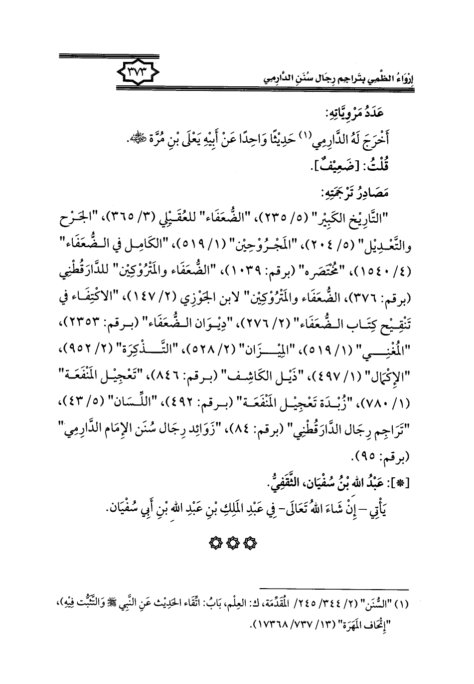 كتاب إرواء الظمي بتراجم رجال سنن الدارمي