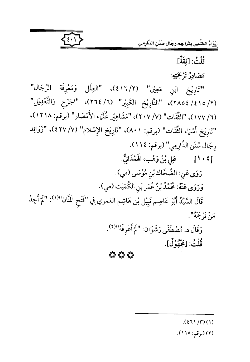 كتاب إرواء الظمي بتراجم رجال سنن الدارمي