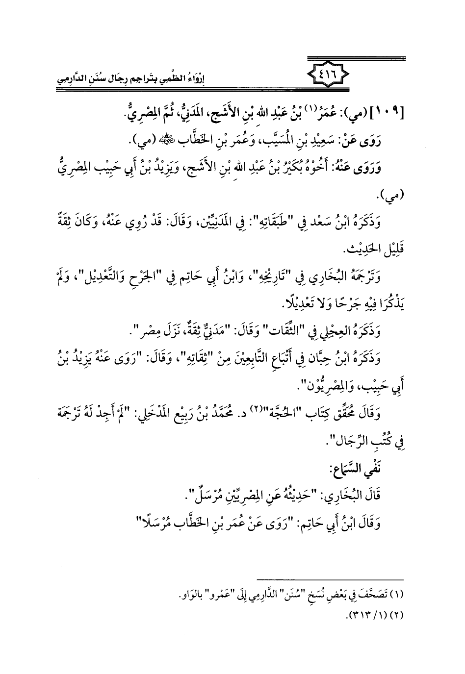 كتاب إرواء الظمي بتراجم رجال سنن الدارمي