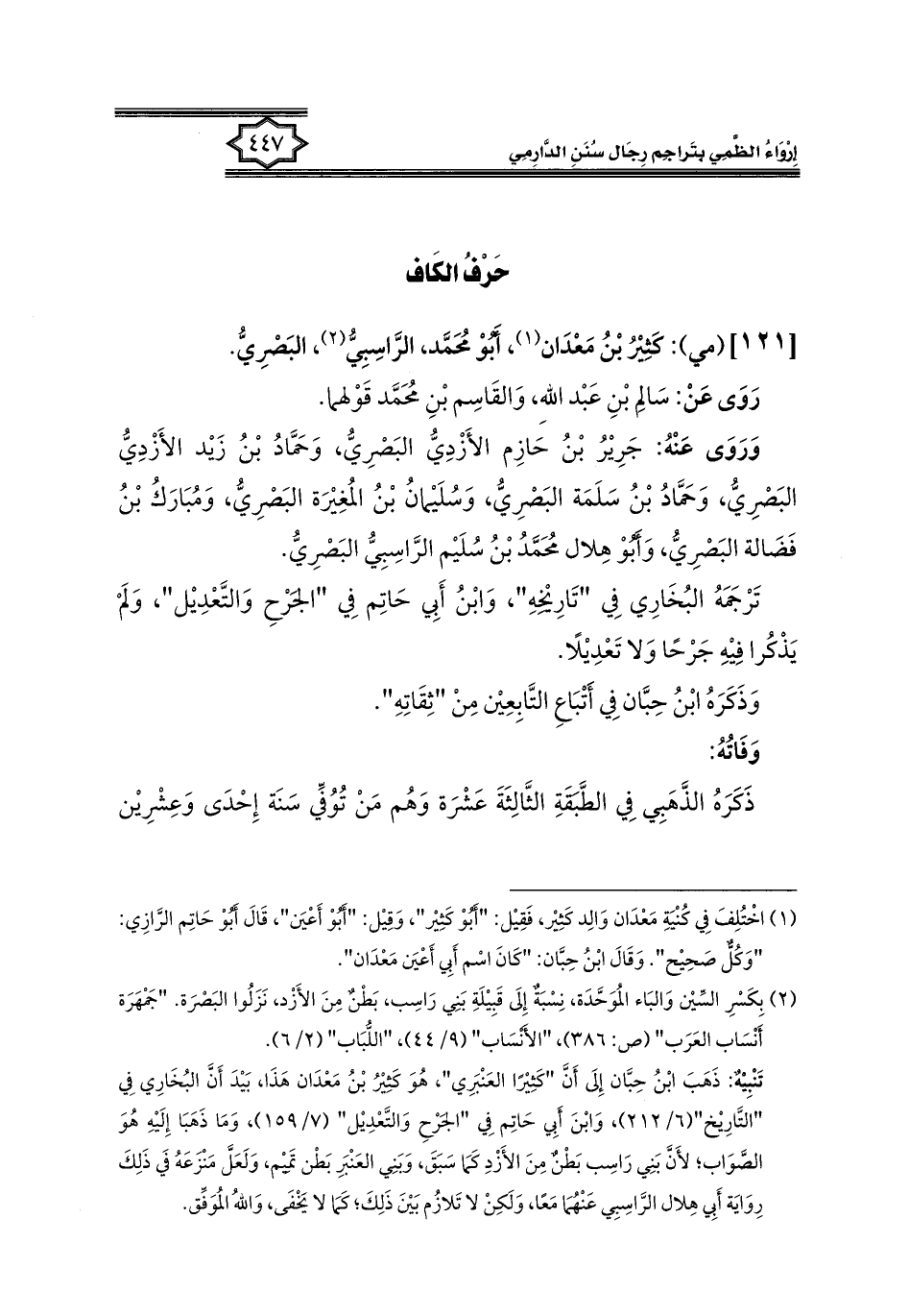 [١٢١] (مي): كَثِيْرُ بْنُ مَعْدَان (¬١)، أَبُوْ مُحَمَّد، الرَّاسِبِيُّ (¬٢)، البَصْرِيُّ.