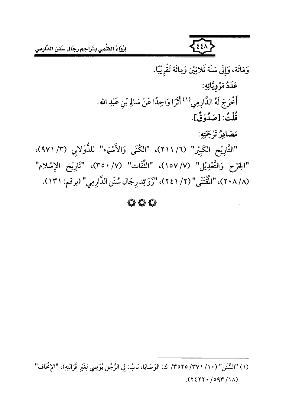 كتاب إرواء الظمي بتراجم رجال سنن الدارمي