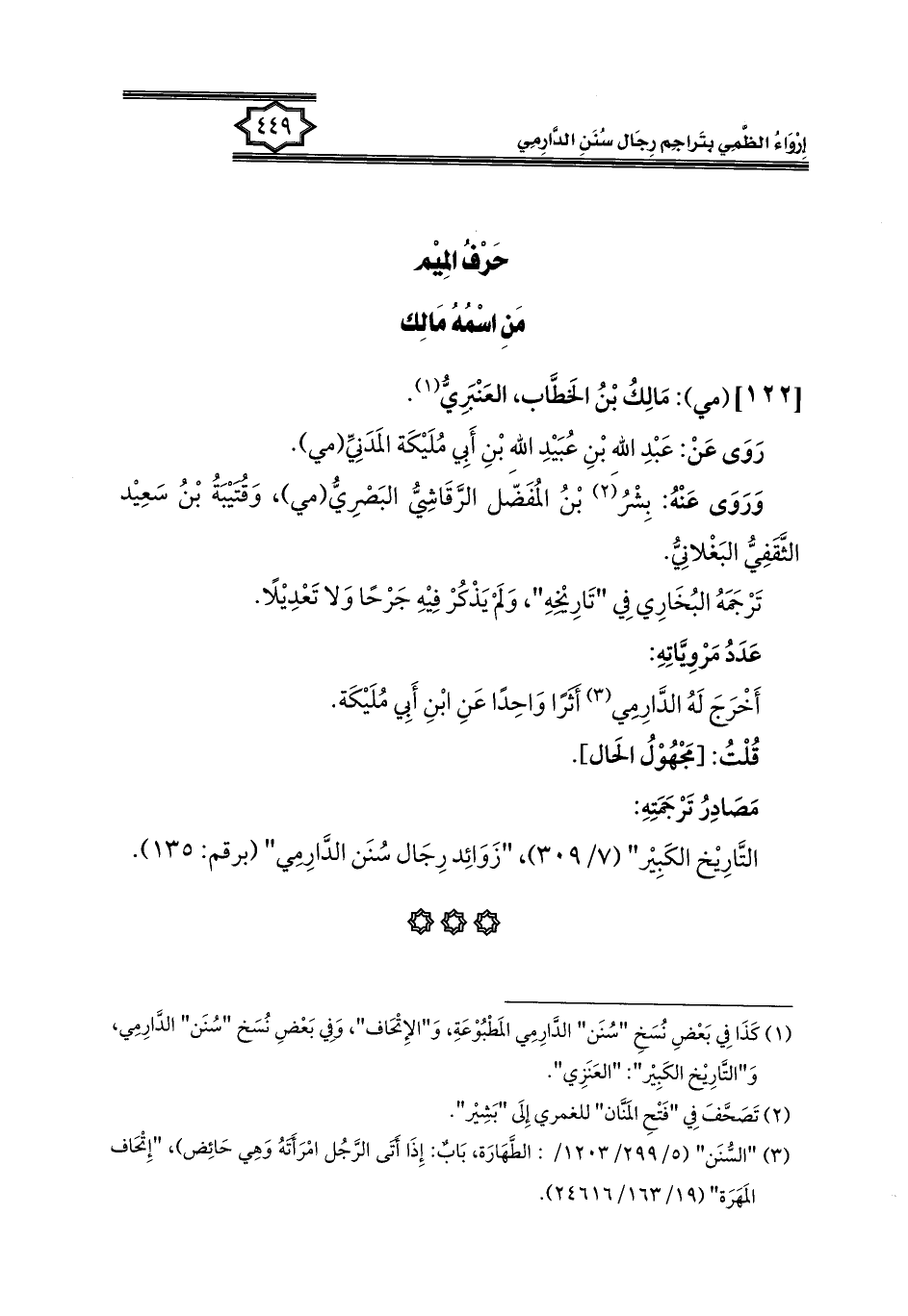 [١٢٢] (مي): مَالِكُ بْنُ الخَطَّاب، العَنْبَرِيُّ (¬١).
