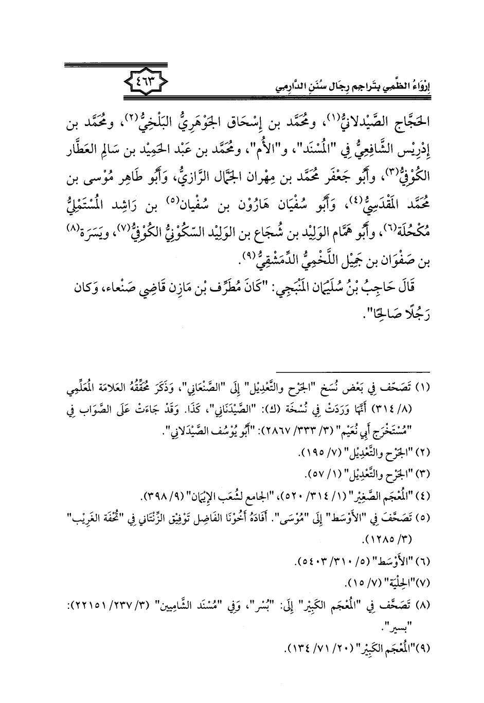 كتاب إرواء الظمي بتراجم رجال سنن الدارمي
