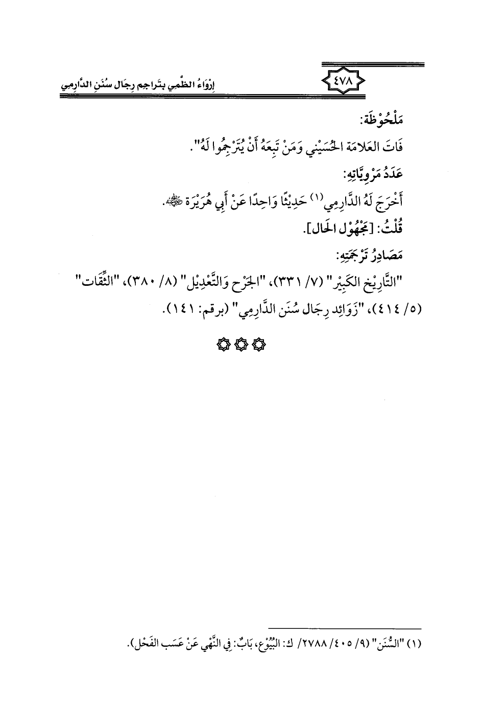 كتاب إرواء الظمي بتراجم رجال سنن الدارمي