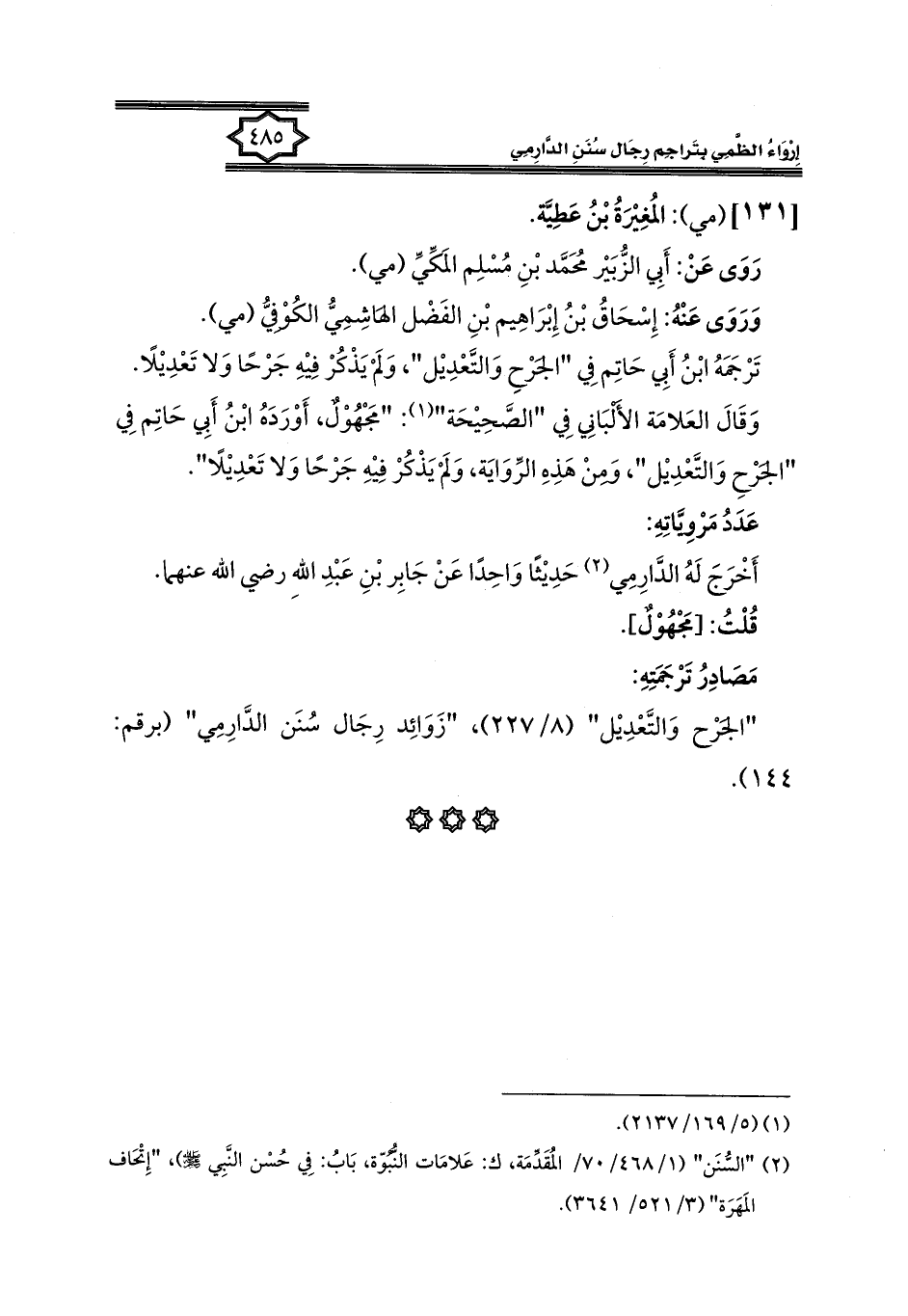 [١٣١] (مي): المُغِيْرَةُ بْنُ عَطِيَّة.