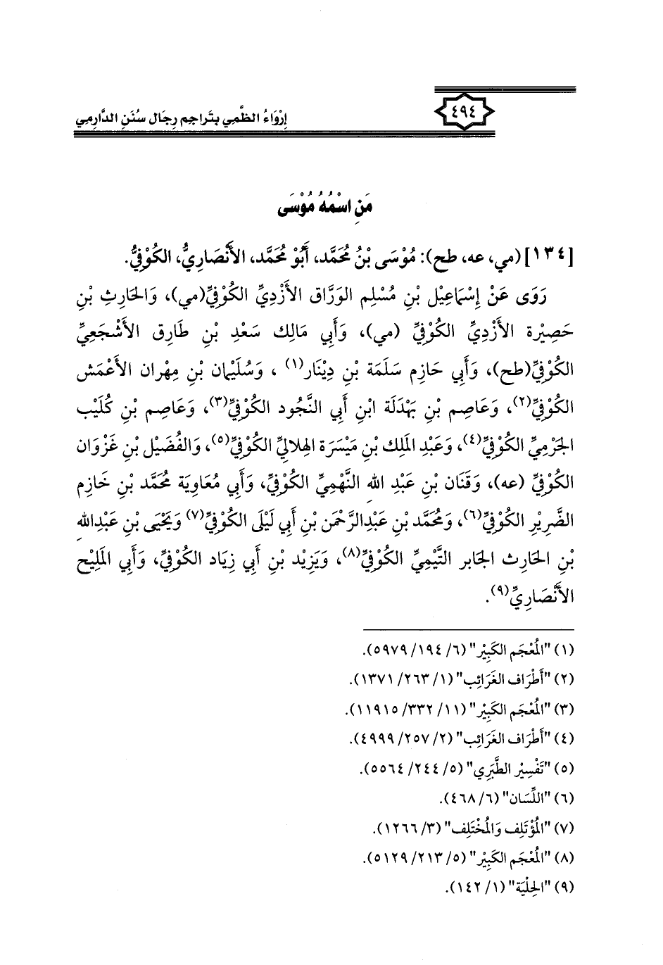 [١٣٤] (مي، عه، طح): مُوْسَى بْنُ مُحَمَّد، أَبُوْ مُحَمَّد، الأَنْصَارِيُّ، الكُوْفِيُّ.