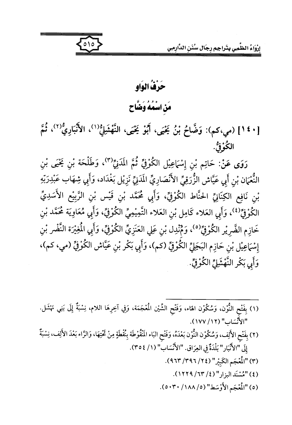 [١٤٠] (مي، كم): وَضَّاحُ بْنُ يَحْيَى، أَبُوْ يَحْيَى، النَّهْشَلِيُّ (¬١)، الأَنْبَارِيُّ (¬٢)، ثُمَّ الكُوْفِيُّ.