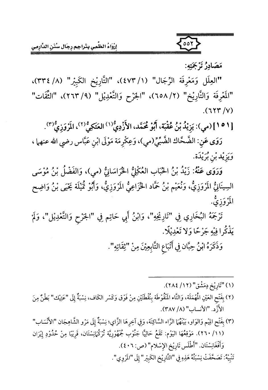 [١٥١] (مي): يَزِيْدُ بْنُ عُقْبَة، أَبُوْ مُحَمَّد، الأَزْدِيُّ (¬١) العَتَكِيُّ (¬٢)، المَرْوَزِيُّ (¬٣).