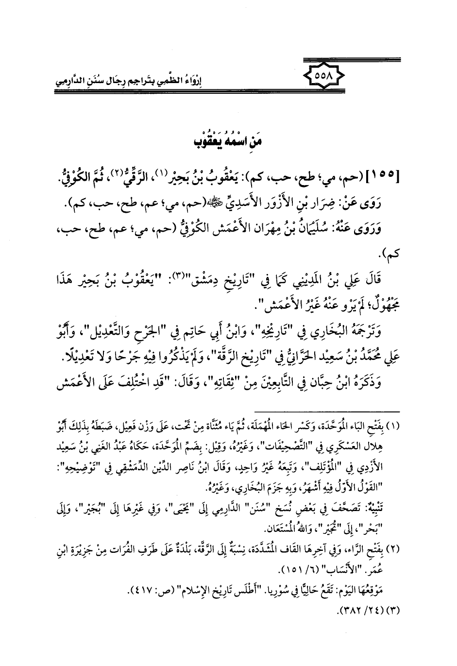 (¬٢) بِفَتْحِ الرَّاء، وَفِي آخِرِهَا القَاف المُشَدَّدَة، نِسْبَةٌ إِلَى الرَّقَّة، بَلْدَةٌ عَلَى طَرَفِ الفُرَات مِنْ جَزِيْرَةِ ابْنِ عُمَر. "الأَنسَاب" (٦/ ١٥١).