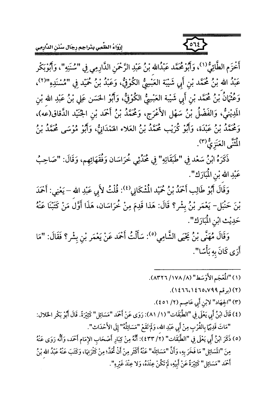كتاب إرواء الظمي بتراجم رجال سنن الدارمي