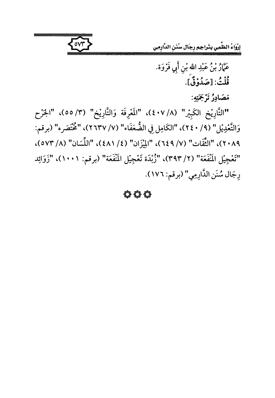 كتاب إرواء الظمي بتراجم رجال سنن الدارمي