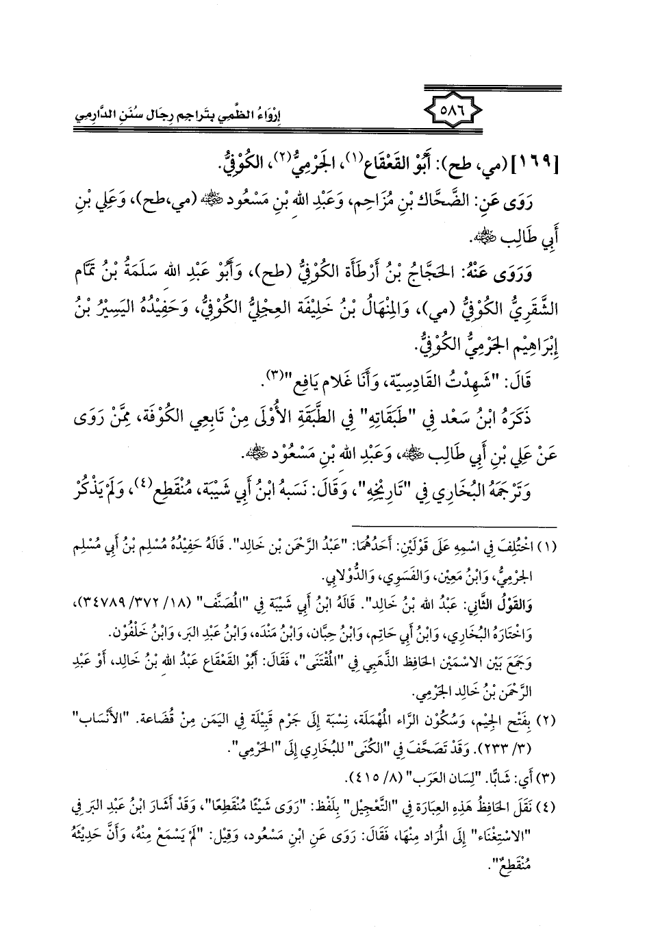 [١٦٩] (مي، طح): أَبُوْ القَعْقَاع (¬١)، الجَرْمِيُّ (¬٢)، الكُوْفِيُّ.