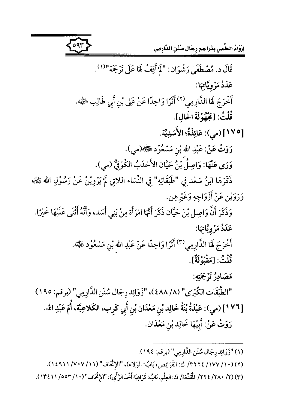 (¬١) "زَوَائِد رِجَال سُنَن الدَّارِمِي" (برقم: ١٩٤).