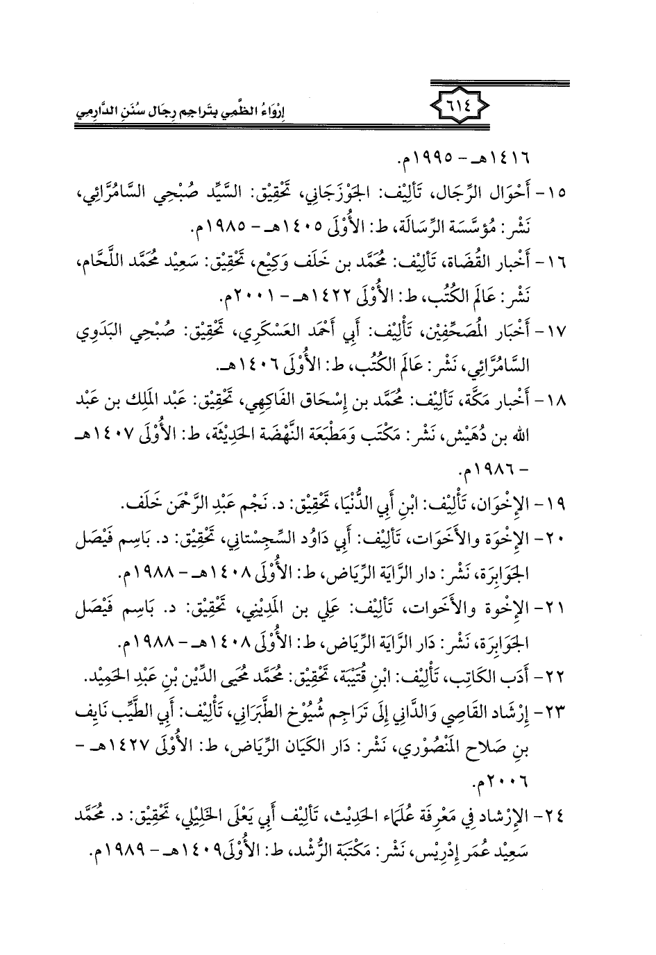 كتاب إرواء الظمي بتراجم رجال سنن الدارمي