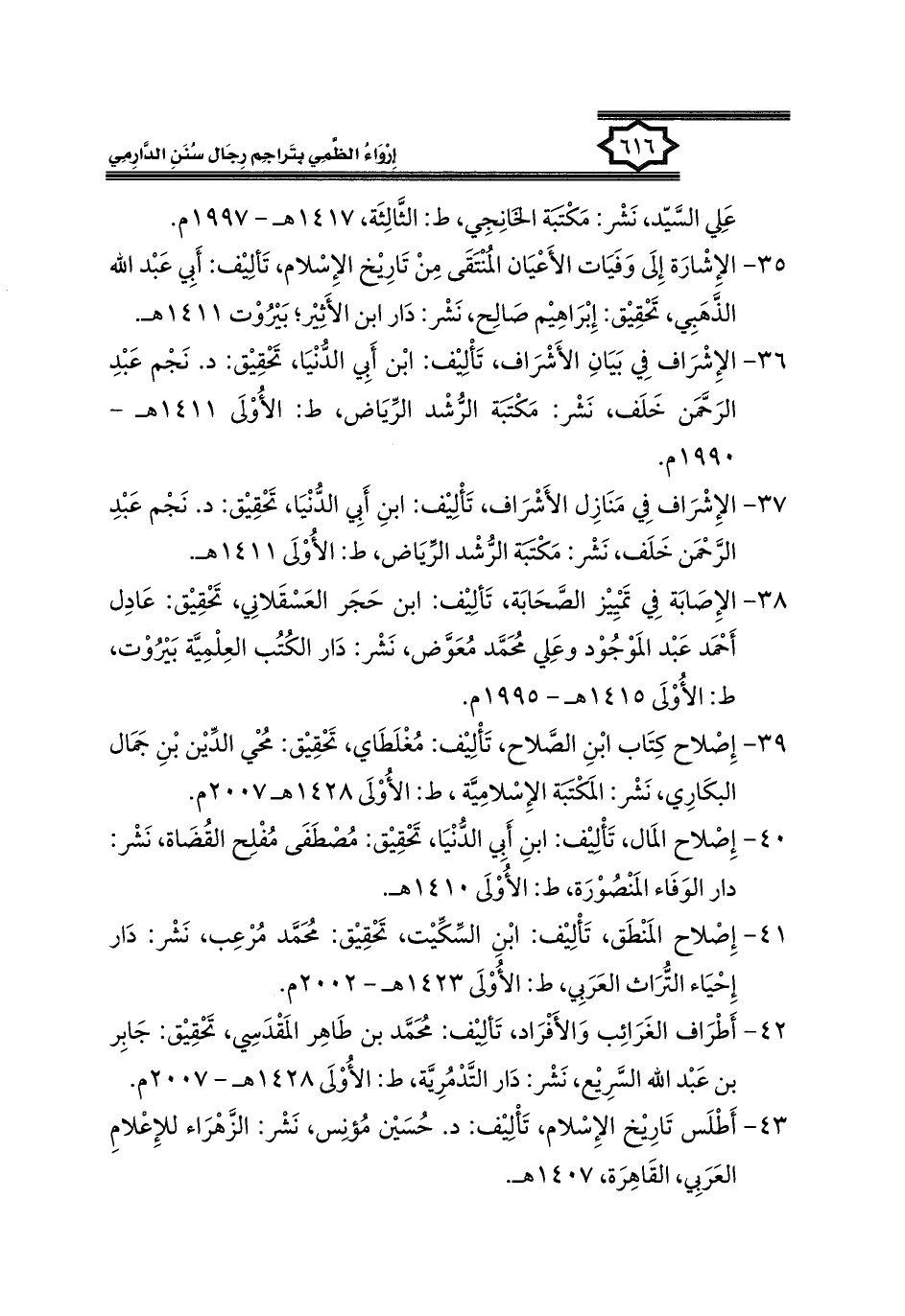 كتاب إرواء الظمي بتراجم رجال سنن الدارمي