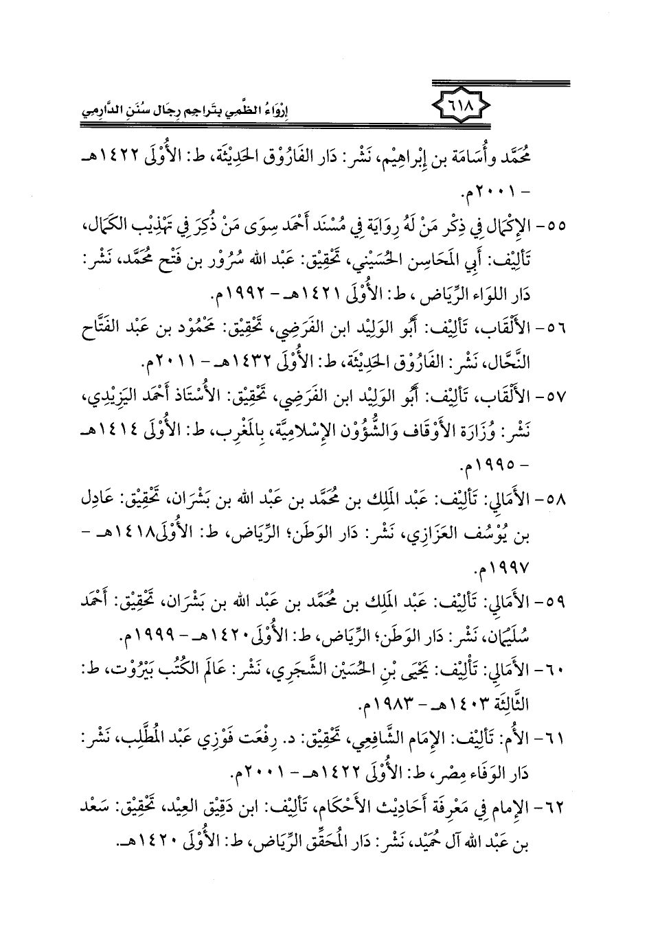 كتاب إرواء الظمي بتراجم رجال سنن الدارمي