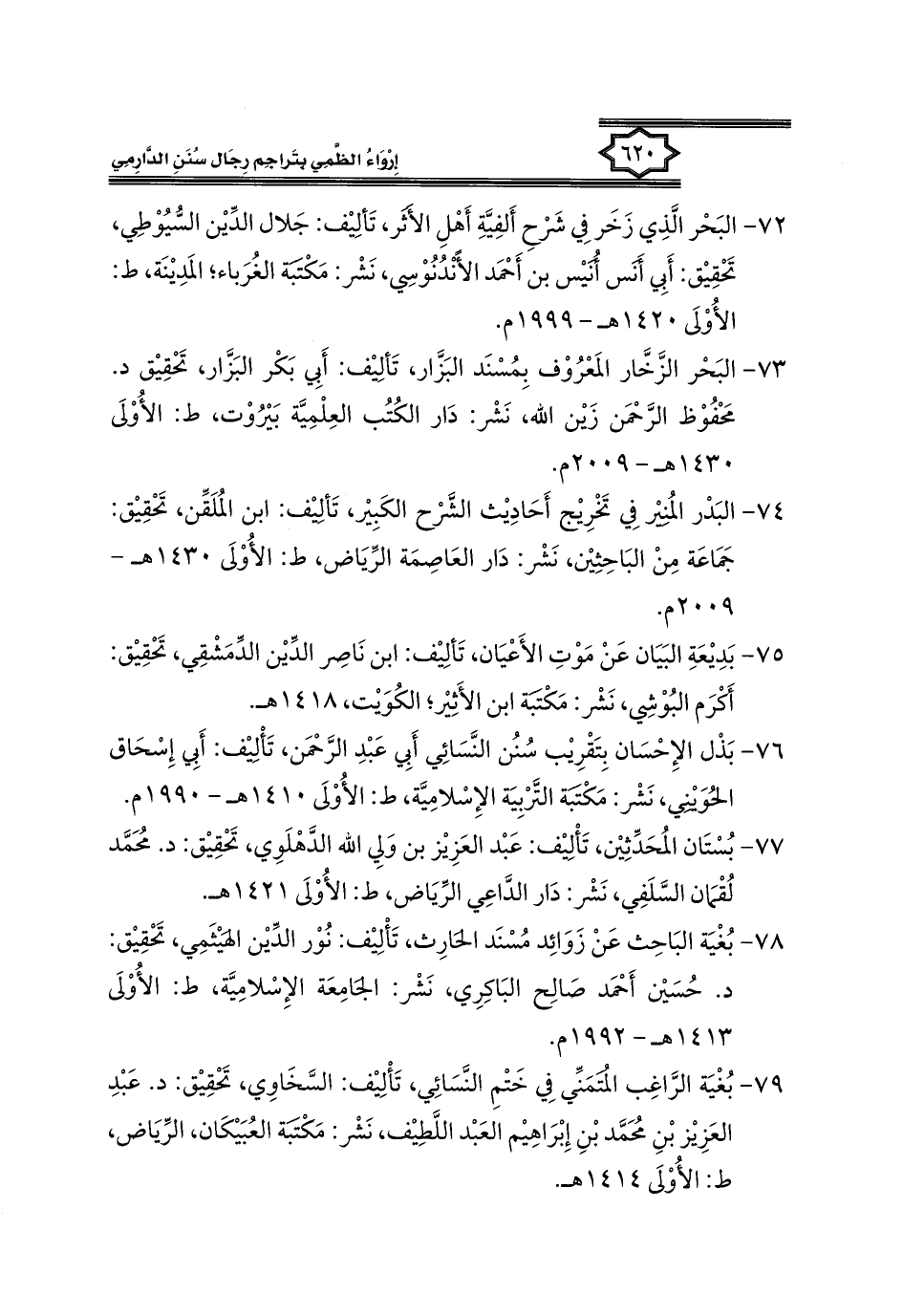 كتاب إرواء الظمي بتراجم رجال سنن الدارمي