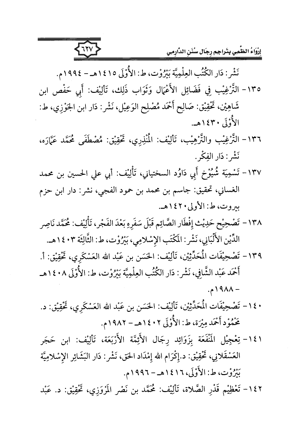 كتاب إرواء الظمي بتراجم رجال سنن الدارمي