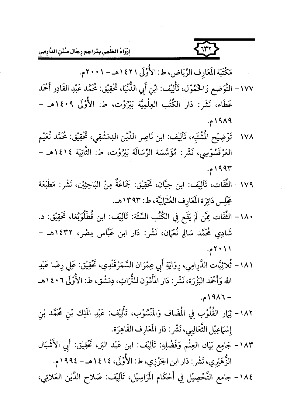 كتاب إرواء الظمي بتراجم رجال سنن الدارمي