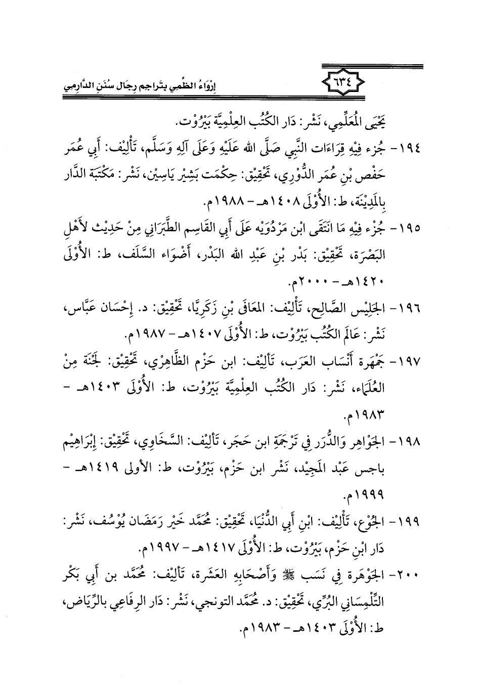 كتاب إرواء الظمي بتراجم رجال سنن الدارمي
