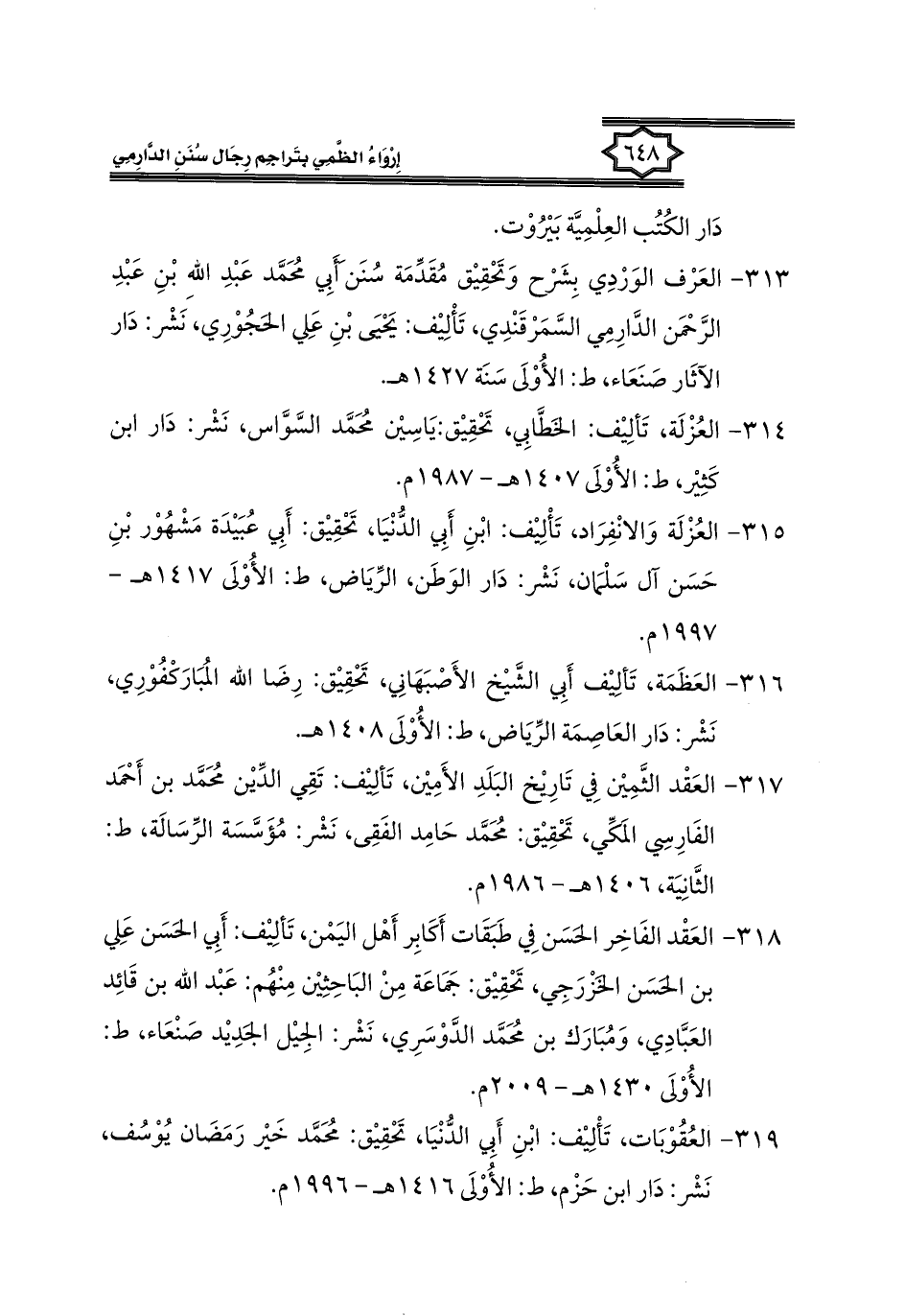 كتاب إرواء الظمي بتراجم رجال سنن الدارمي