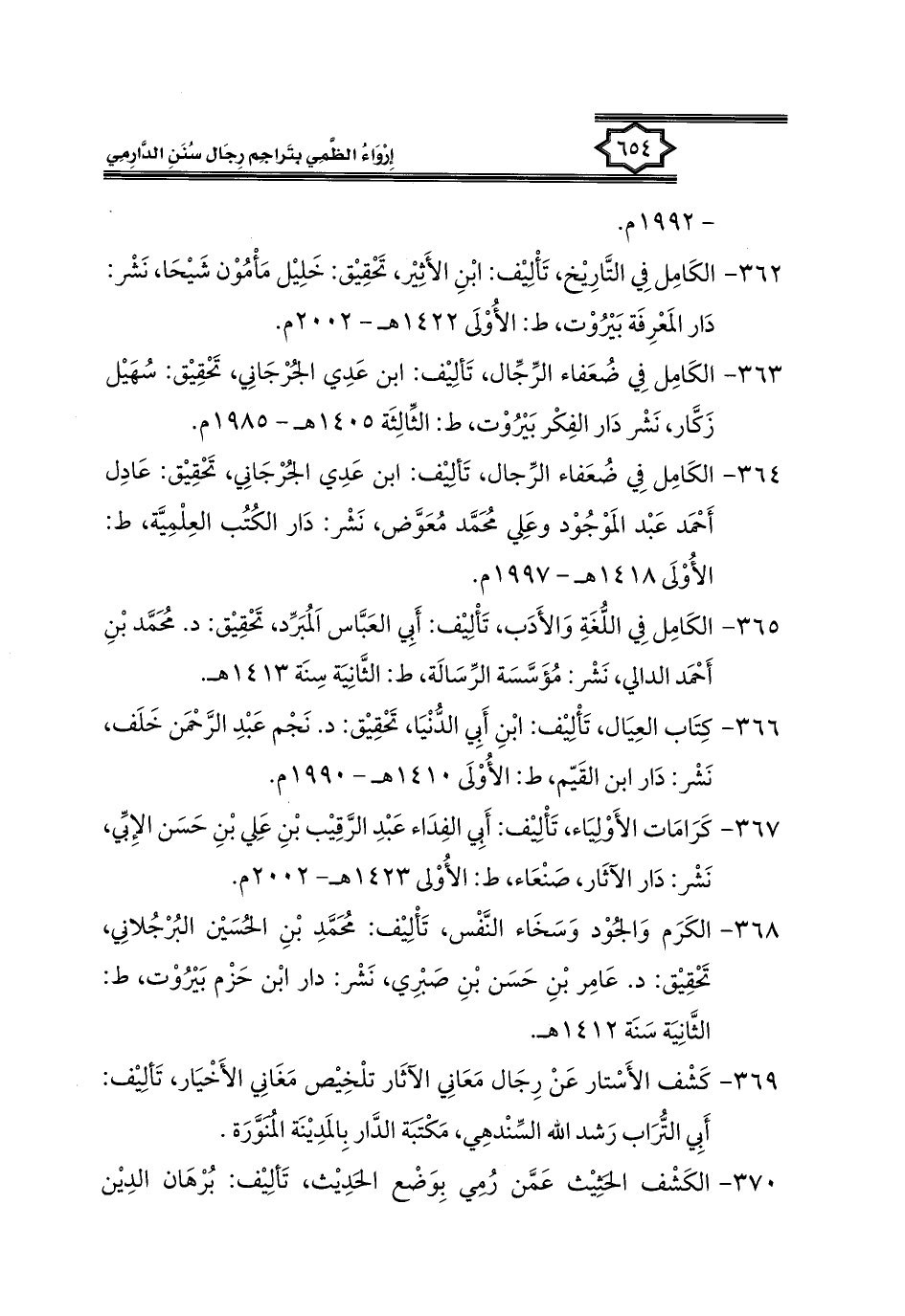 ٣٦٣ - الكَامِل فِي ضُعَفاء الرِّجِّال، تَألِيْف: ابن عَدِي الجُرْجَانِي، تَحْقِيْق: سُهَيْل زَكَّار، نَشْر دَار الفِكْر بَيْرُوْت، ط: الثِّالِثَة ١٤٠٥ هـ - ١٩٨٥ م.