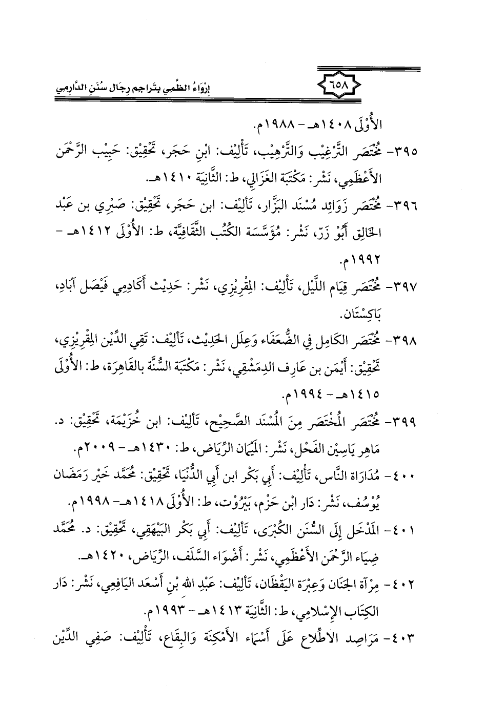 كتاب إرواء الظمي بتراجم رجال سنن الدارمي