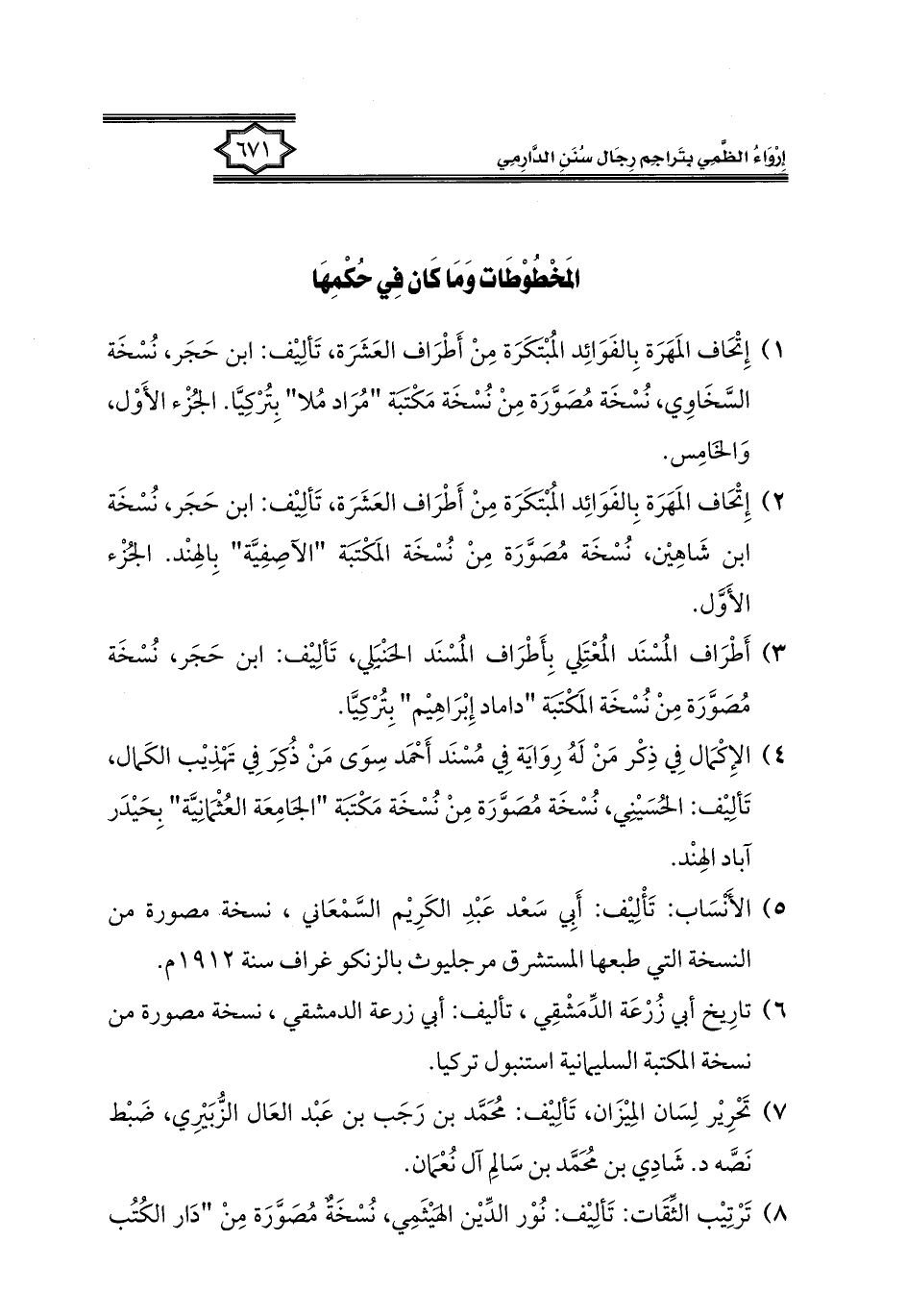 كتاب إرواء الظمي بتراجم رجال سنن الدارمي