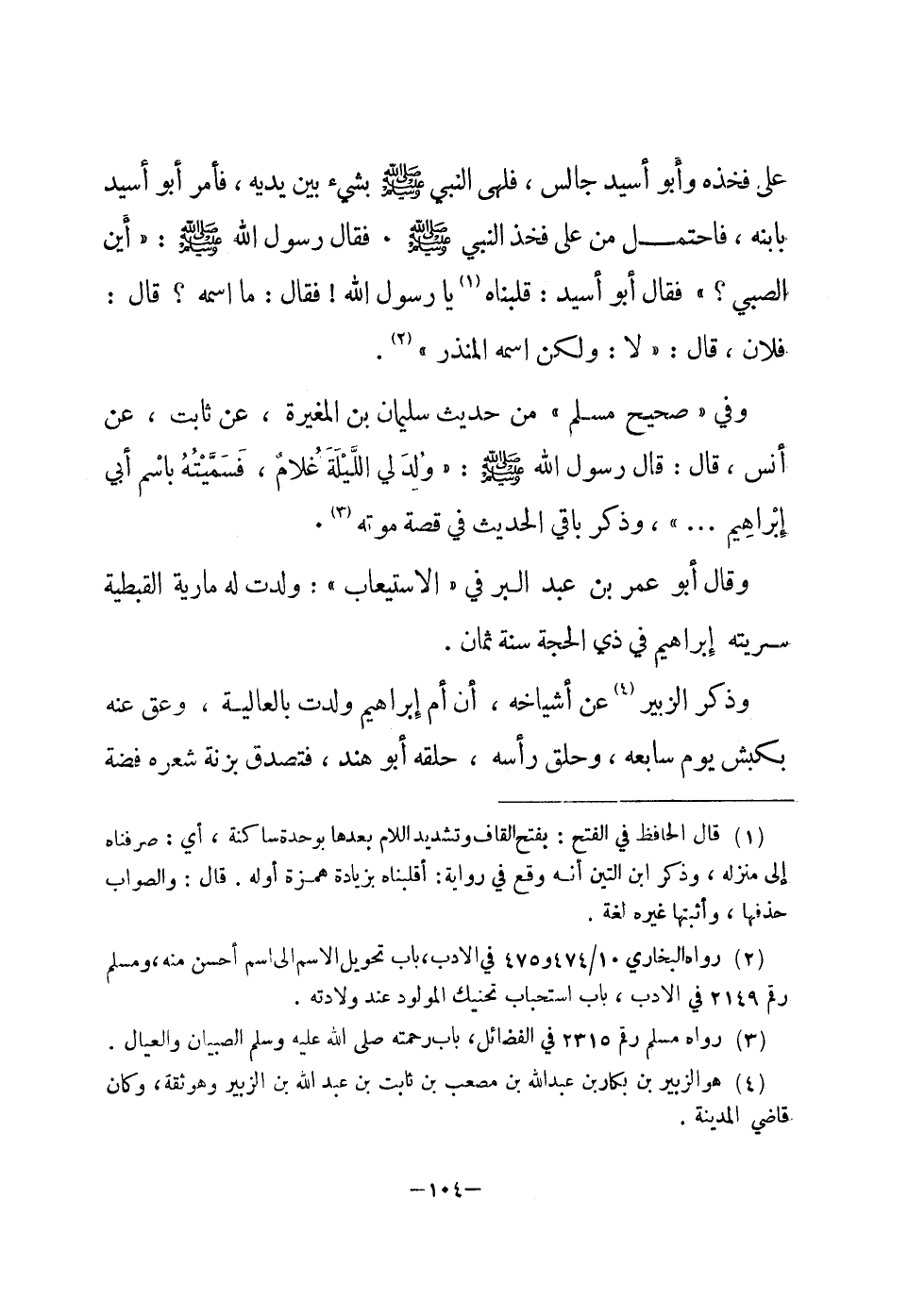 وَفِي صَحِيح مُسلم من حَدِيث سُلَيْمَان بن الْمُغيرَة عَن ثَابت عَن أنس قَالَ قَالَ رَسُول الله صلى الله عَلَيْهِ وَسلم ولد لي اللَّيْلَة غُلَام فسميته باسم أبي إِبْرَاهِيم وَذكر بَاقِي الحَدِيث فِي قصَّة مَوته