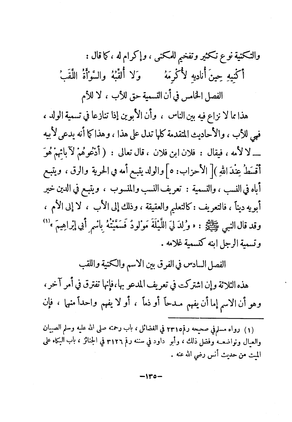 الْفَصْل السَّادِس فِي الْفرق بَين الِاسْم والكنية واللقب