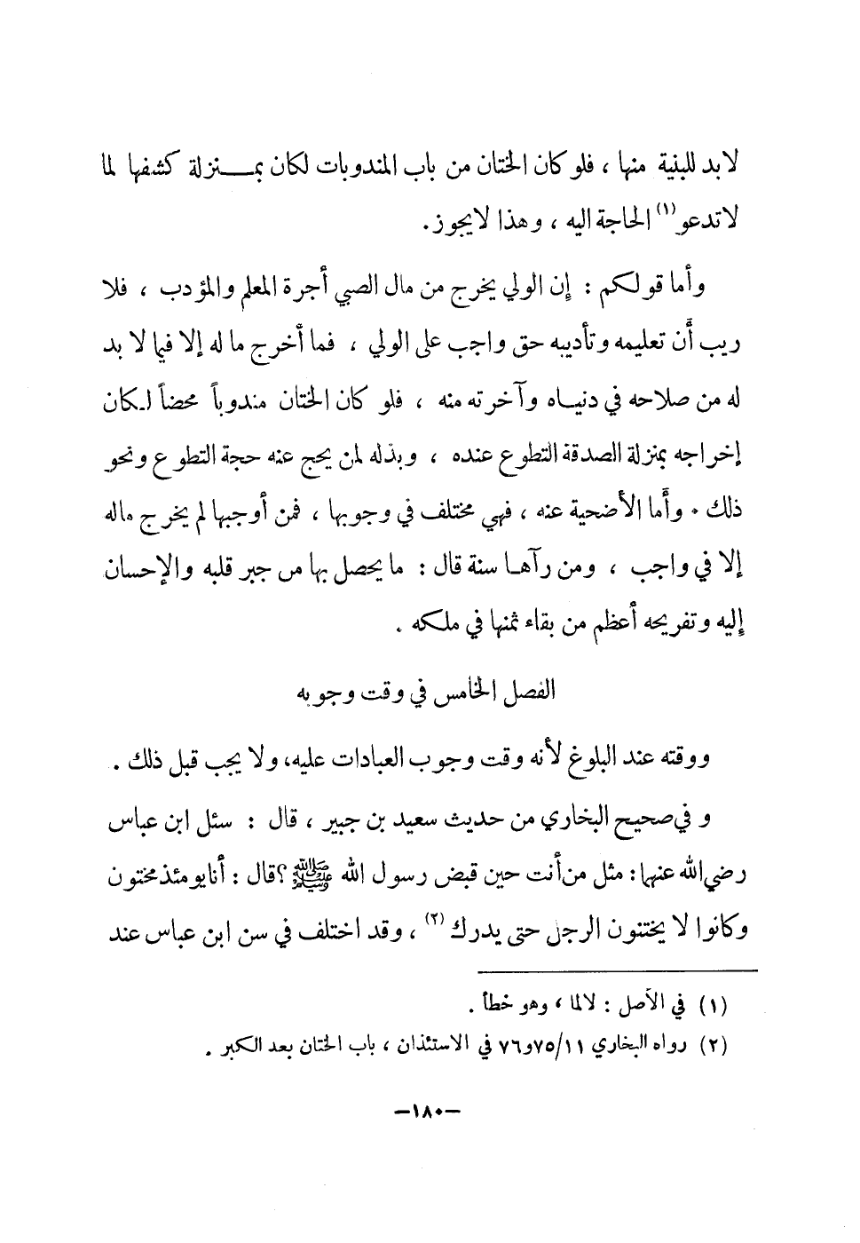 الْفَصْل الْخَامِس فِي وَقت وُجُوبه