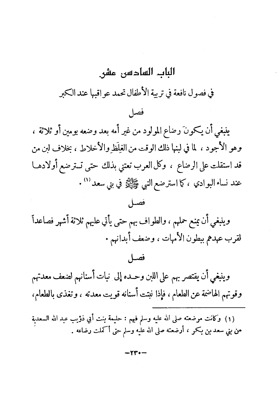 فِي فُصُول نافعة فِي تربية الْأَطْفَال تحمد عواقبها عِنْد الْكبر