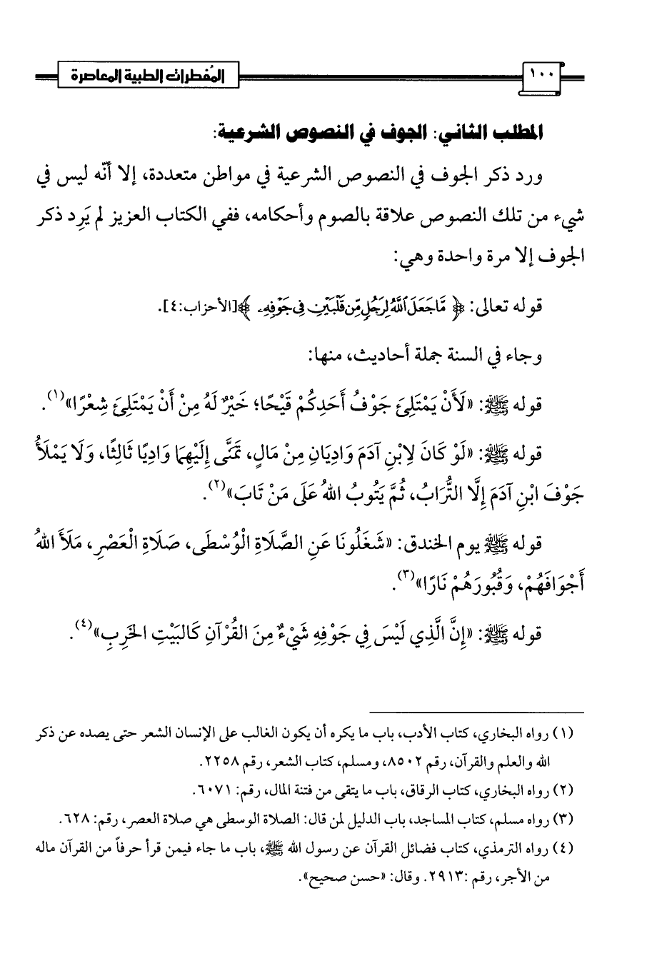 المطلب الثاني: الجوف في النصوص الشرعية: