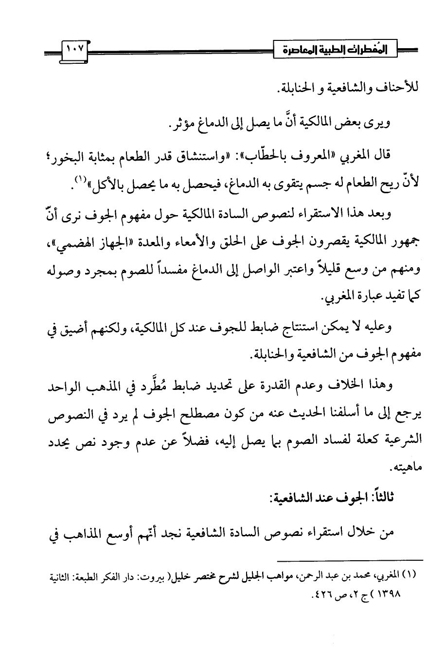 (¬1) المغربي، محمد بن عبد الرحمن، مواهب الجليل لشرح مختصر خليل (بيروت: دار الفكر الطبعة: الثانية 1398) ج 2، ص 426.