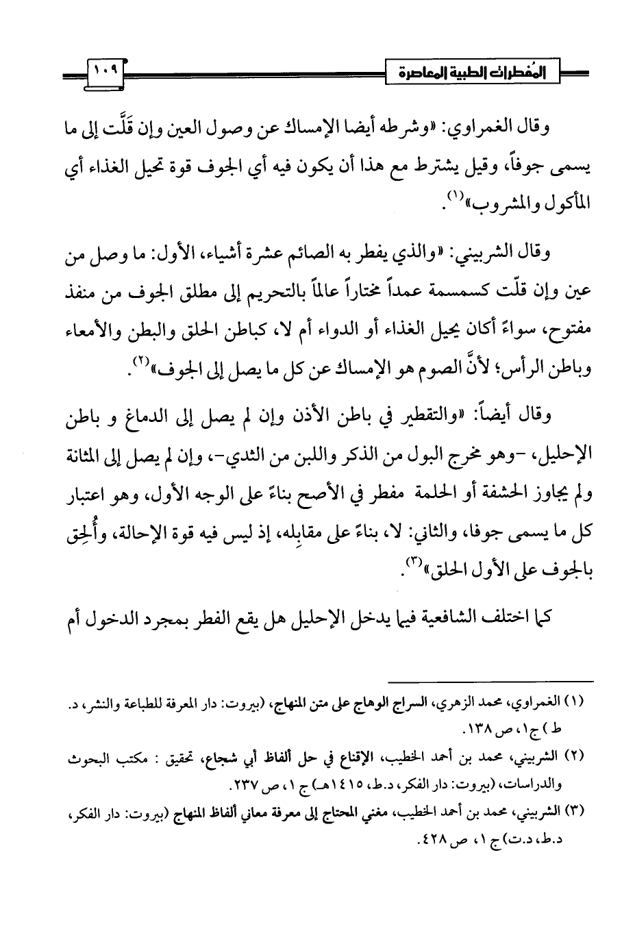 (¬3) الشربيني، محمد بن أحمد الخطيب، مغني المحتاج إلى معرفة معاني ألفاظ المنهاج (بيروت: دار الفكر، د. ط، د. ت) ج 1، ص 428.