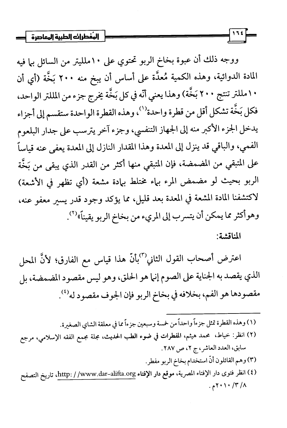 (¬2) انظر: خياط، محمد هيثم، المفطرات في ضوء الطب الحديث، مجلة مجمع الفقه الإسلامي، مرجع سابق، العدد العاشر، ج 2، ص 287.