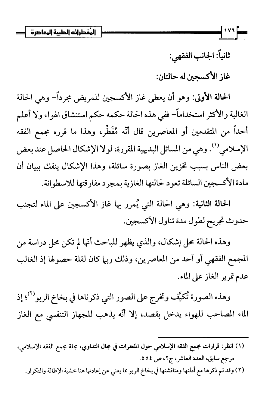 (¬2) وقد تم ذكرها مع أدلتها ومناقشتها في بخاخ الربو مما يغني عن إعادتها هنا خشية الإطالة والتكرار.