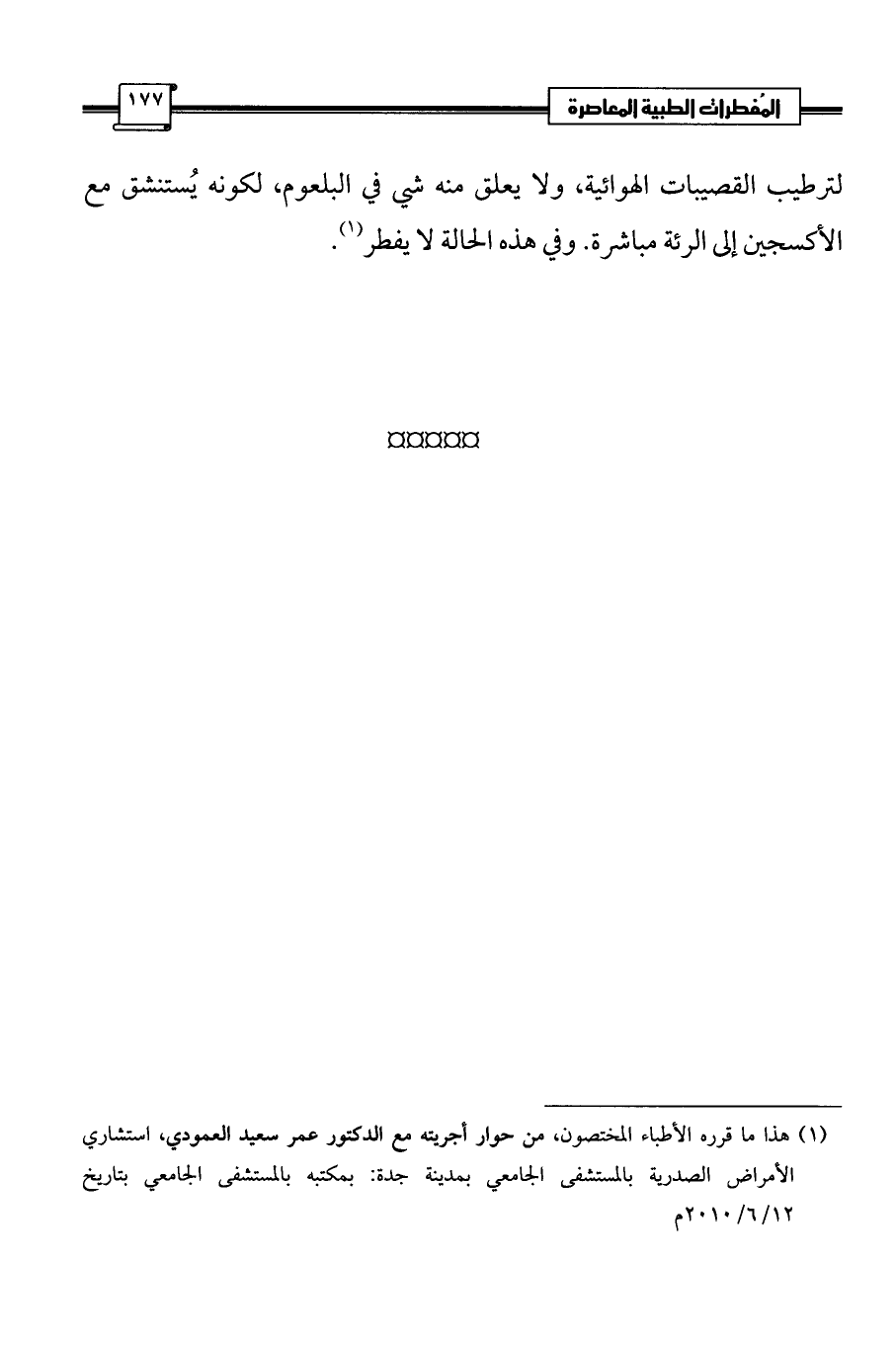 (¬1) هذا ما قرره الأطباء المختصون، من حوار أجريته مع الدكتور عمر سعيد العمودي، استشاري الأمراض الصدرية بالمستشفى الجامعي بمدينة جدة: بمكتبه بالمستشفى الجامعي بتاريخ 12/ 6/2010 م