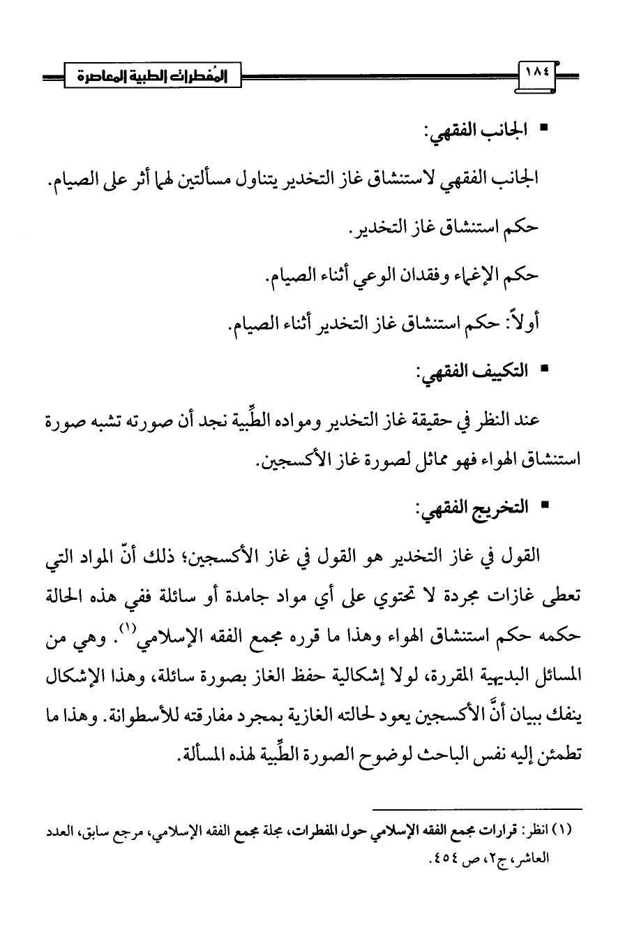 (¬1) انظر: قرارات مجمع الفقه الإسلامي حول المفطرات، مجلة مجمع الفقه الإسلامي، مرجع سابق، العدد العاشر، ج 2، ص 454.