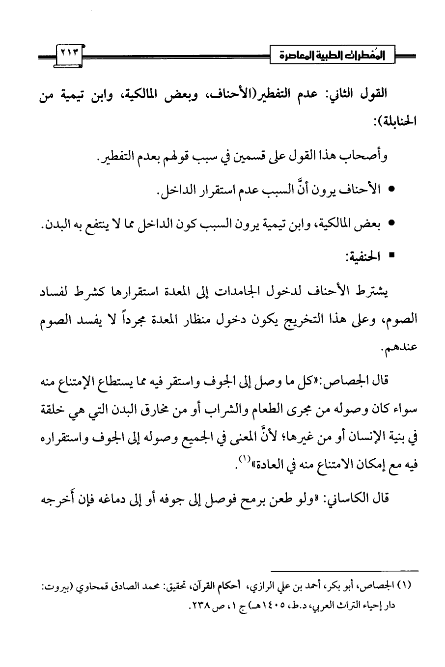 (¬1) الجصاص، أبو بكر، أحمد بن علي الرازي، أحكام القرآن، تحقيق: محمد الصادق قمحاوي (بيروت: دار إحياء التراث العربي، د. ط، 1405 هـ) ج 1، ص 238.